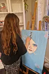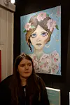 I et hjørne i galleriet står to jenter og fniser. En av jentene er Albertine Garmanslund (10). hun har tegnet helt siden hun var rundt tre år gammel, nå er hun den yngste kunstneren som stiller ut på "pikerommet".