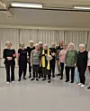 Eldbjørg ler når hun forteller om samtalen de hadde med et nytt medlem i gruppen etter sist dansetrening.