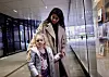 Yuliia Martynovych-Lazutina og datter Emilia Lazutina (5) ser på fotoutstillingen til Ronny Larsen, hvor de selv figurerer.