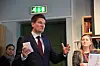 Slik innledet Sølve Kuraas Karlsen, leder i Tenk, kronprinsens besøk til den interaktive utstillingen "Jakten på Sannheten".