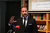 Kulturbyråd Reidar Digranes tok imot kronprinsen da han ankom Hovedbiblioteket tirsdag formiddag. Politikeren mener Tenk-utstillingen kommer på et godt tidspunkt.