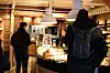 I kaféen er bordene fulle. Her forveksles det ord på både tysk, nederlandsk, engelsk og norsk. Ifølge Toft er det flest tyskere som stikker innom. Og nesten alle vil ha det samme.